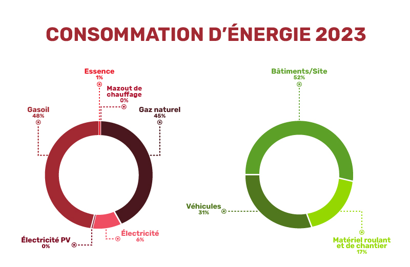 - Le premier concerne la consommation d’énergie : nous visons une diminution progressive de 5 % de nos besoins énergétiques d’ici 2028, par rapport à 2023, grâce à l’optimisation de nos processus, de notre logistique et de nos modes de déplacement. Parallèlement, nous prévoyons de doubler notre production d’énergie renouvelable d’ici 2027 (base 2023), notamment à travers le développement de projets photovoltaïques sur nos sites.